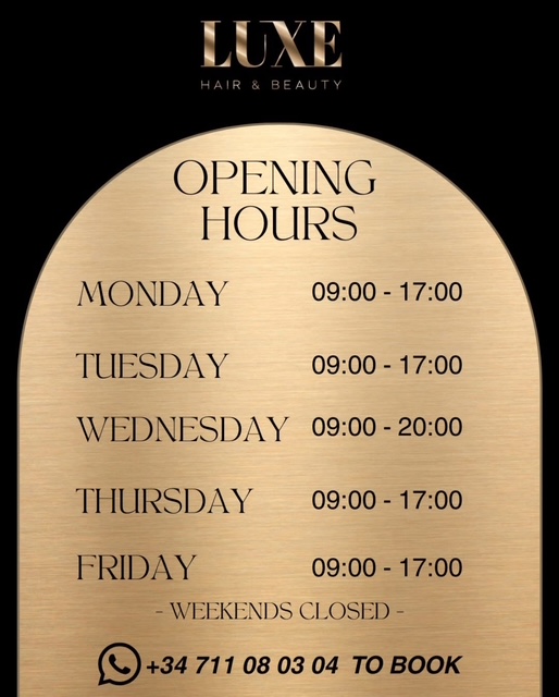 Luxe offer a full range of treatments for hair, nails and beauty. A couple of the staff from Aglae (formerly on La Torre) have re-located to the salon, Carmen is the main hair stylist and Kenia is the beauty therapist (her massages are so good highly recommended). One of the business owners Leanne is running the nail bar but is also a skin specialist so can offer advanced facials and medical grade treatments. The salon has been designed to offer clients a luxury environment to relax and be pampered and also offer a range of bespoke products and also signature Luxe products too. They also have a dedicted pedicure booth. There is ample free parking on the street outside the salon.